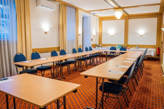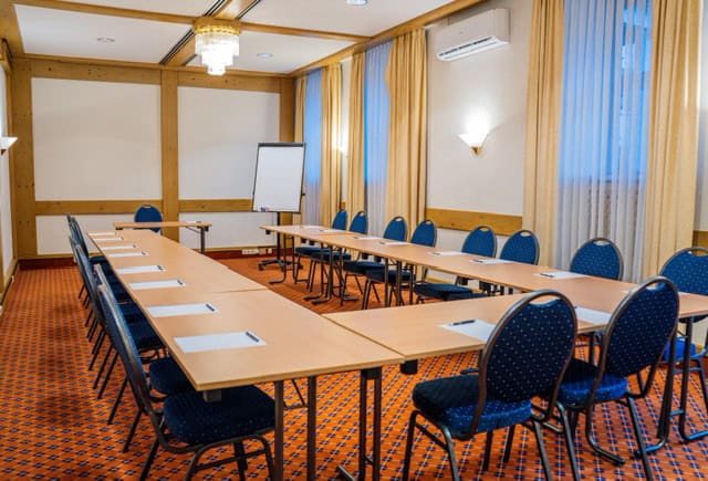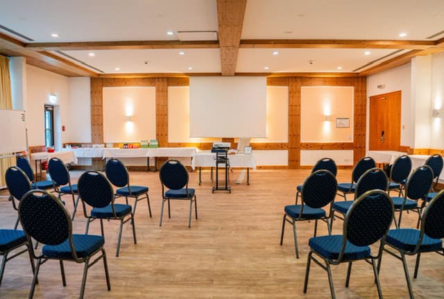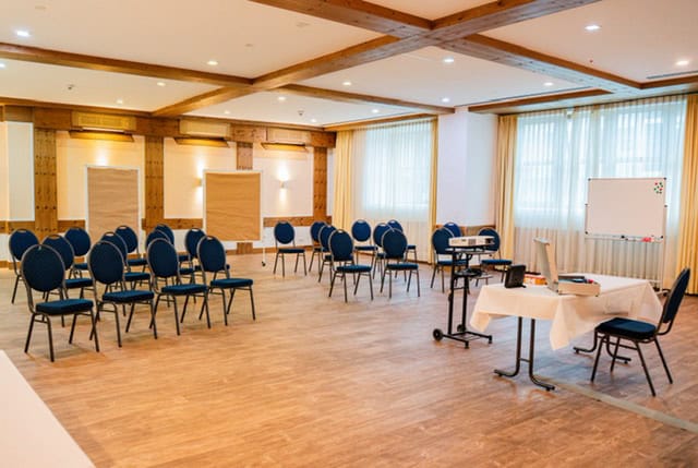 Ein idealer Raum für Sitzungen, intensive Schulungseinheiten oder geschlossene Meetings im Rahmen der Tagung. Der Raum bereichert die Kapazität unseres Tagungsbereichs um bis zu 30 Plätze. Warme Farben und angenehmes Licht verschaffen ein gemütliches und arbeitsames Klima.